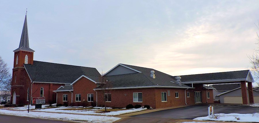 • 1875 Lot purchased on the corner of Cherry and Monroe Streets. Membership of 150. Cost of building and furnishings was $5000 and was dedicated on Sunday, Oct. 21, 1877.
